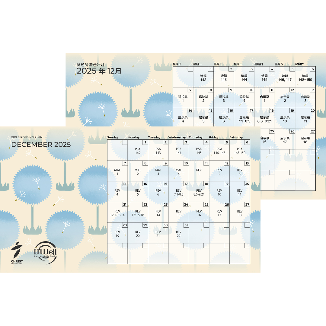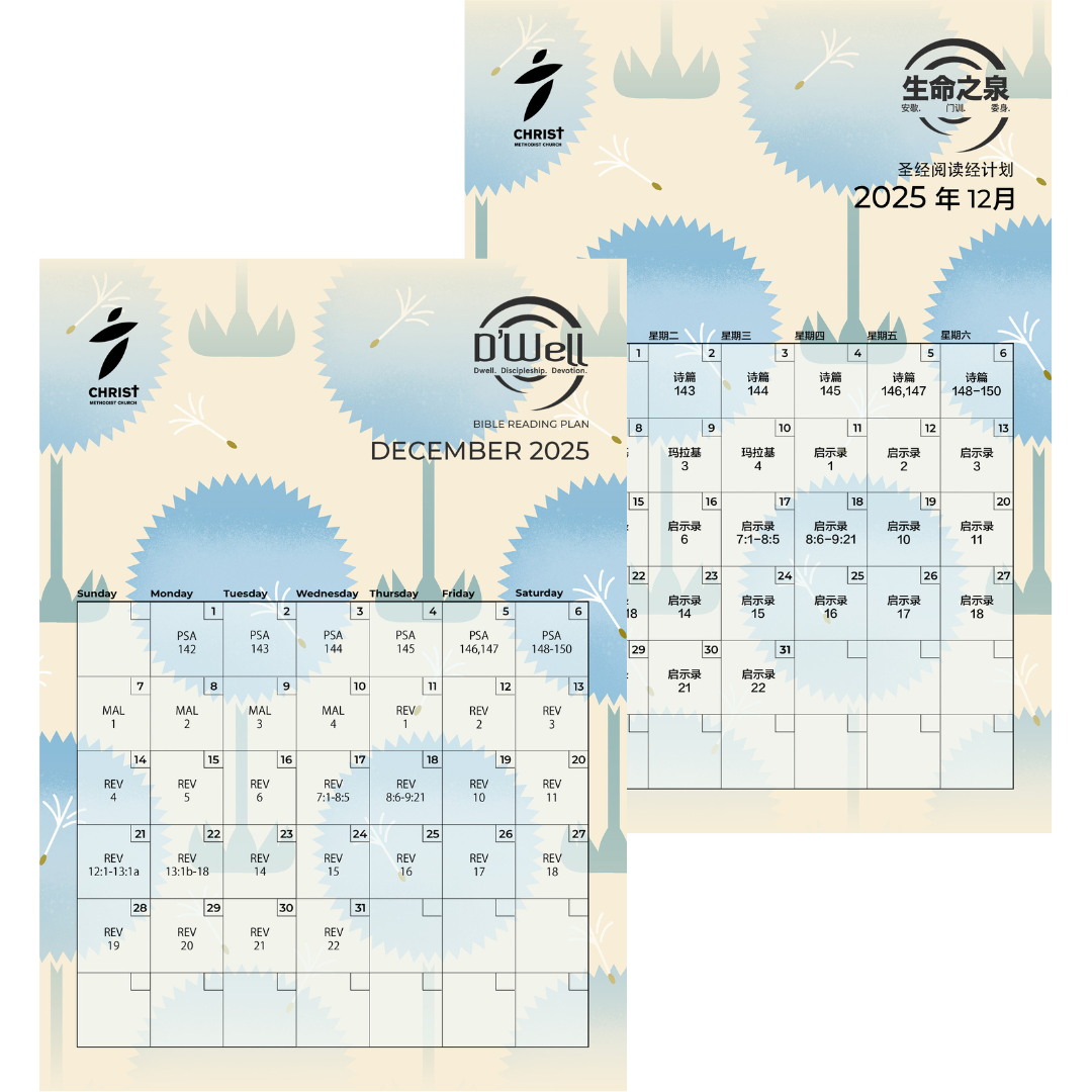 Historically, wells were an essential source of sustenance not just for the individual, but also for families and communities to thrive. Similarly, D’Well is a Bible reading plan that aspires to reach beyond the individual benefits of personal devotion to God. After reading each daily passage, readers are encouraged to ponder over these questions, reflect and share our discoveries, drinking deep from God’s Word together and nourishing one another: